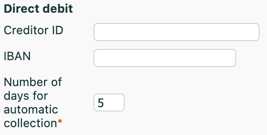 - the number of days before automatic collection: after how many days the bank is authorised to collect the payments.