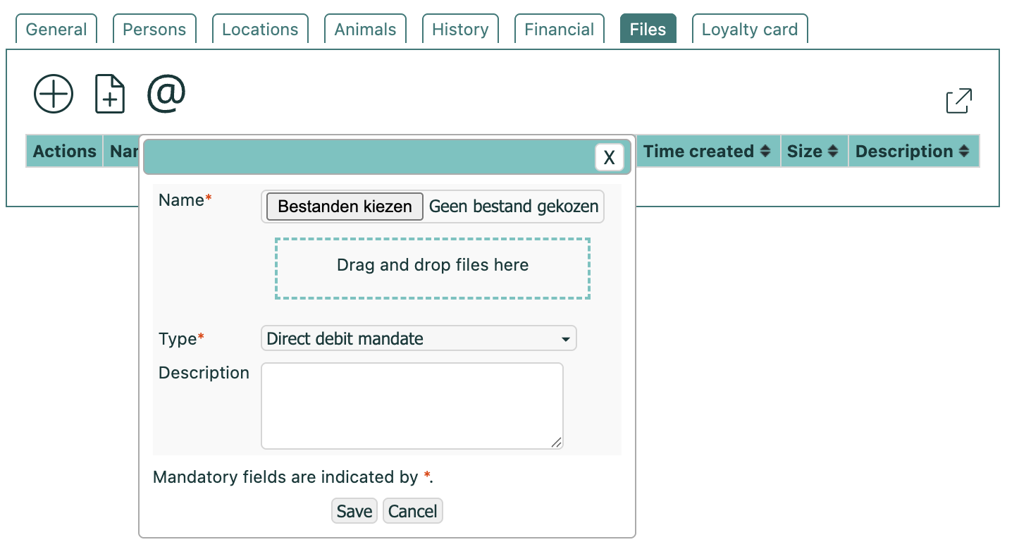 In the Files tab, you can upload the direct debit mandate.