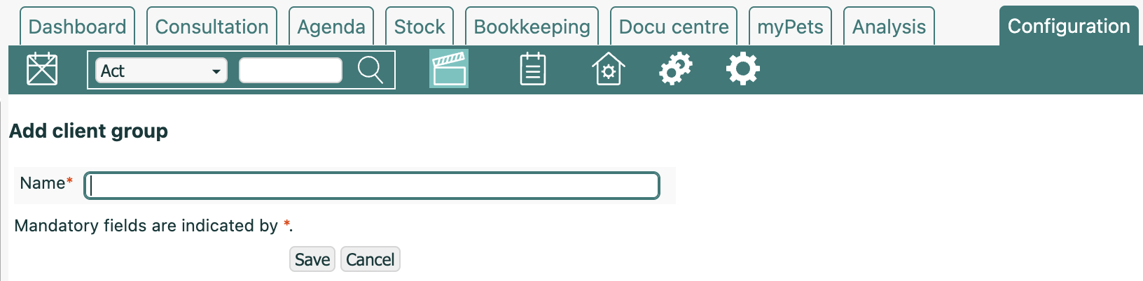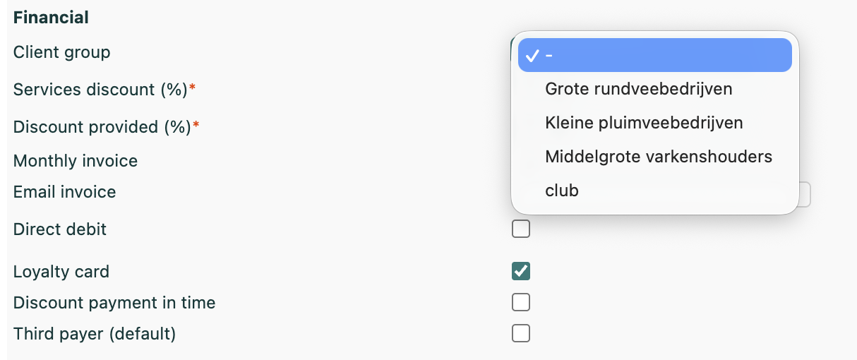 - Enter a name for your new client group (for example, "Large cattle farmers", "Small cattle farmers", "Medium-sized pig farmers", "Poultry farms").
