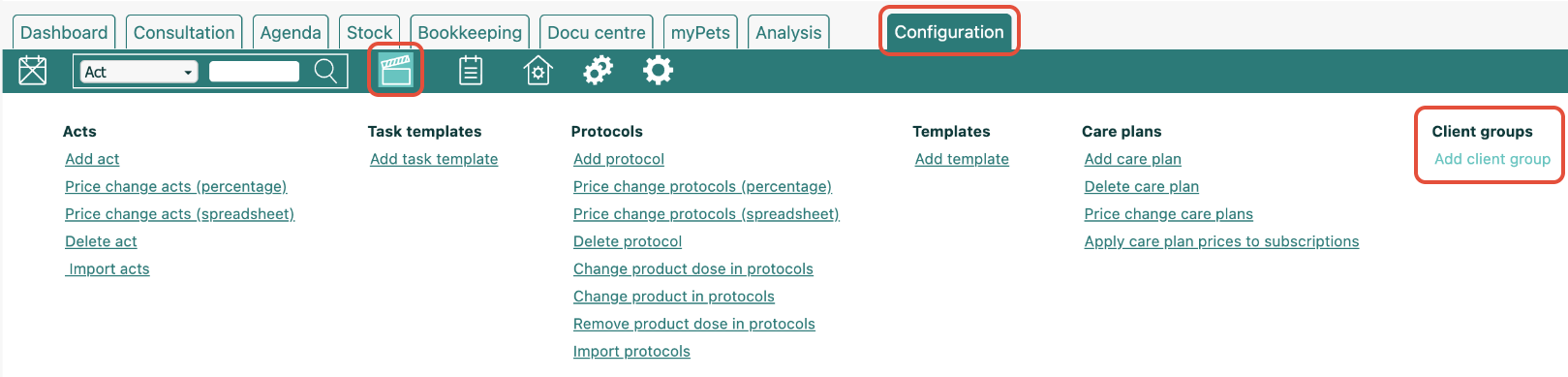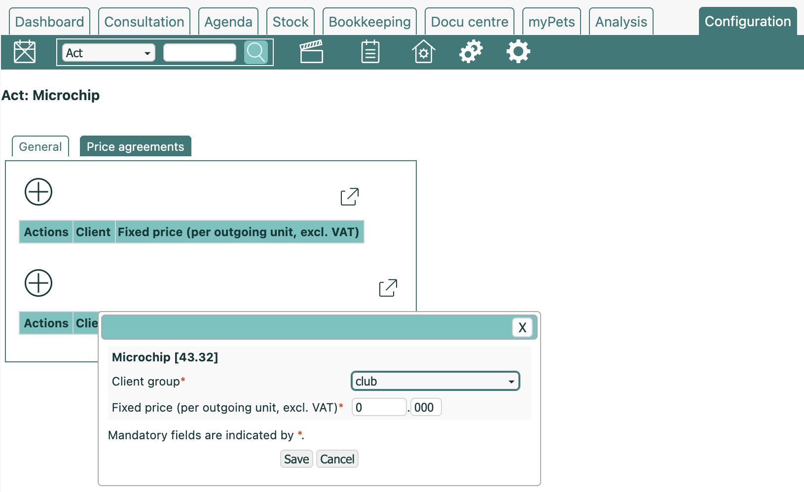 The same process also applies to Acts: you can adjust prices per client or per client group using the same method.