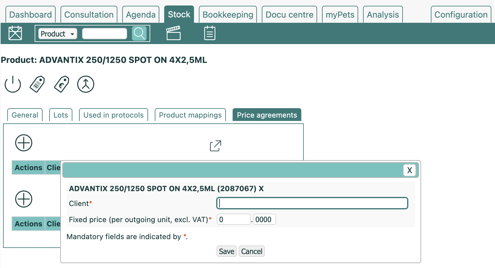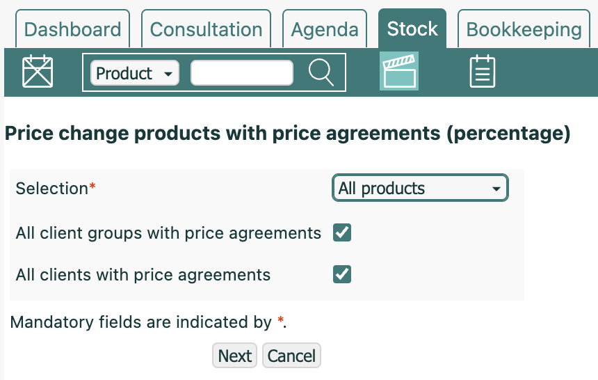 You can also update prices for products linked to customer groups or individual clients directly through the stock module.