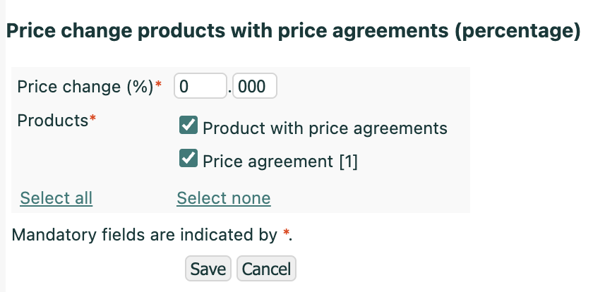 This is a quick way to apply general price updates to multiple products at once, keeping your price agreements consistent across groups.