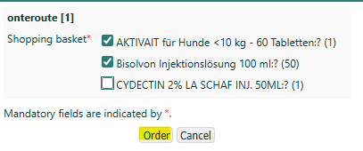 Clicking on Order will fill the shopping basket in Vetpoint.