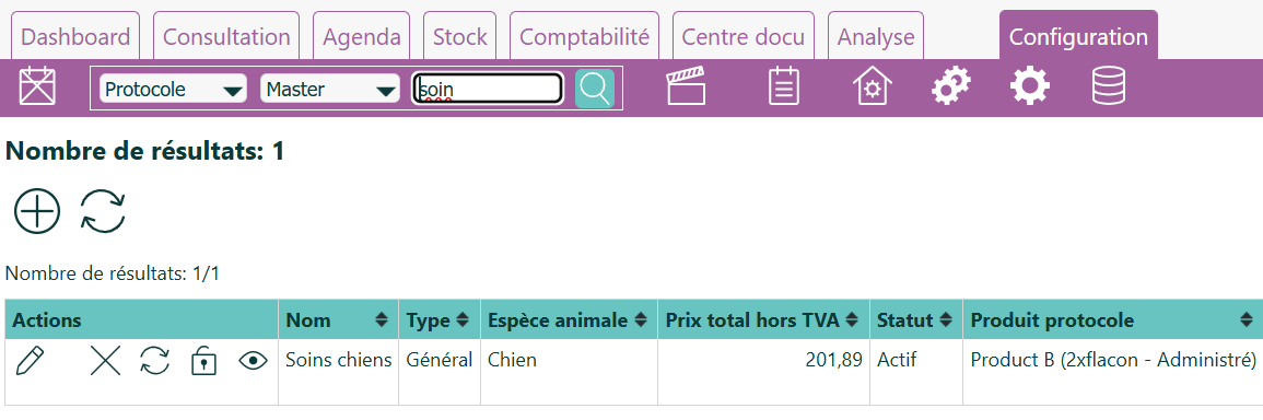 Tous les produits, actes et sous-protocoles inclus dans les protocoles vers les cabinets concernés.