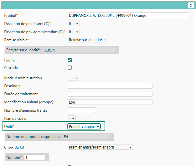 Il est désormais possible d'indiquer dans une consultation/vente que vous vendez un produit complet (au lieu d'un nombre d'unités sortantes). Vous pouvez également reprendre des produits complets.