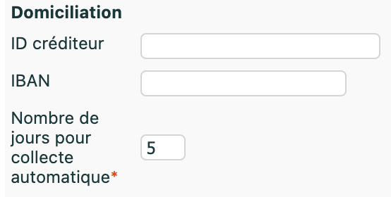 Ces champs sont obligatoires pour activer le direct debit dans Fuga.