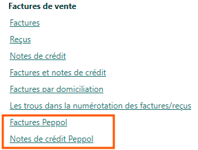 Vos factures et notes de crédit sont désormais envoyées automatiquement via Peppol. Vous pouvez les retrouver dans les rapports de l'onglet Comptabilité, où nous avons apporté quelques améliorations.