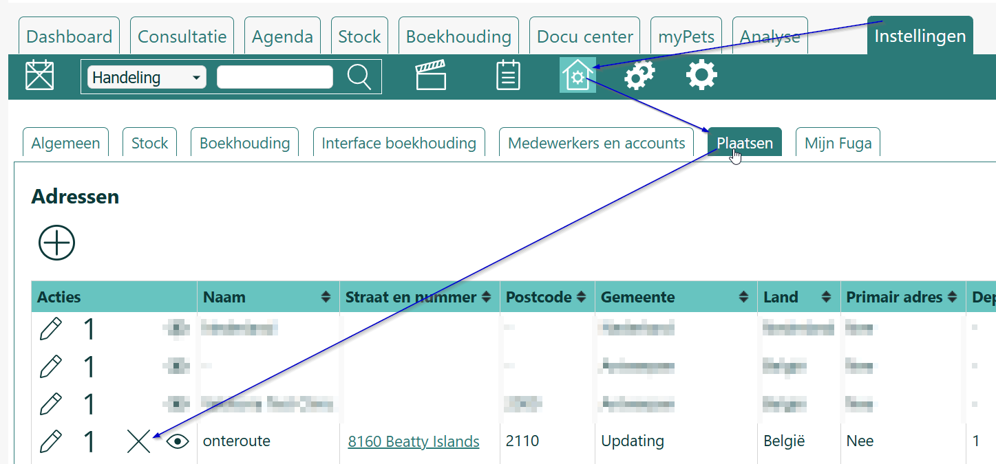 Ga daarvoor naar Instellingen => Praktijkgegevens => Plaatsen