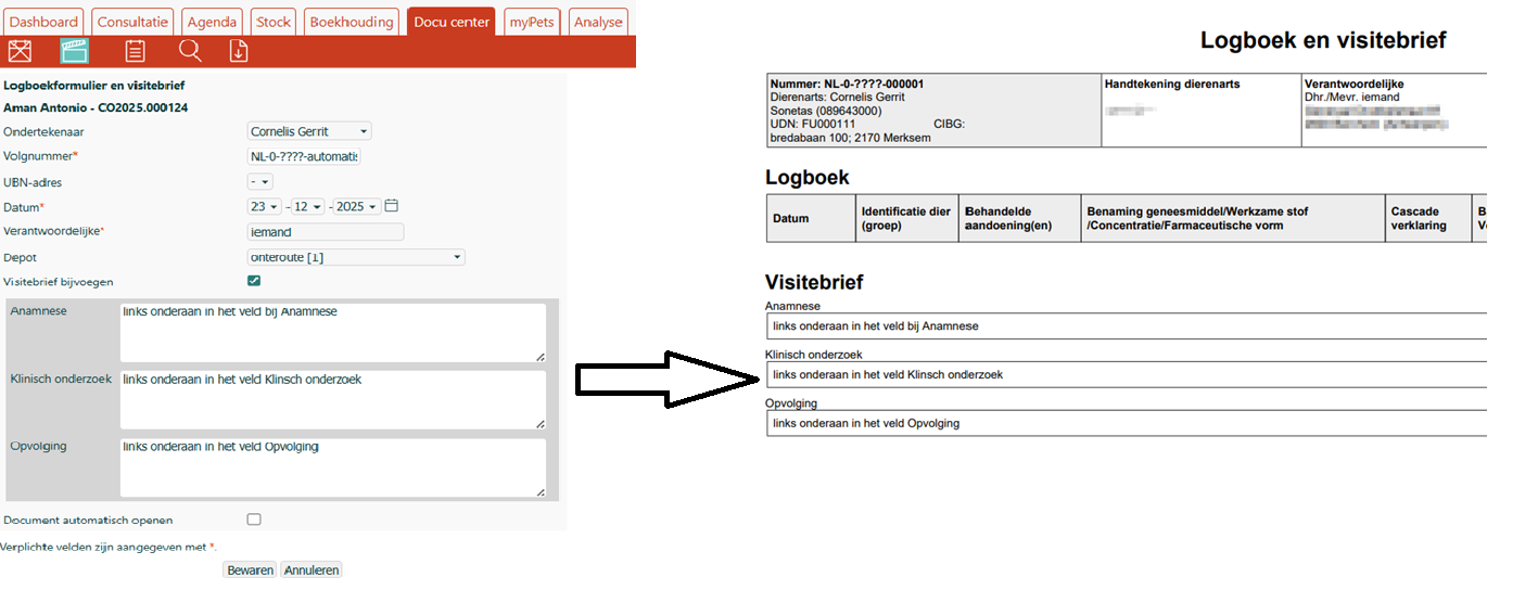 Template 'Logboekformulier en visitebrief'
